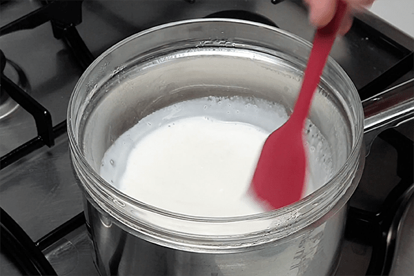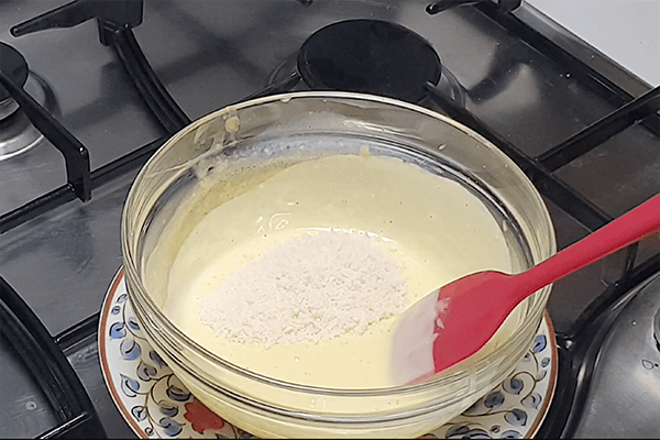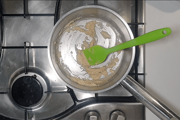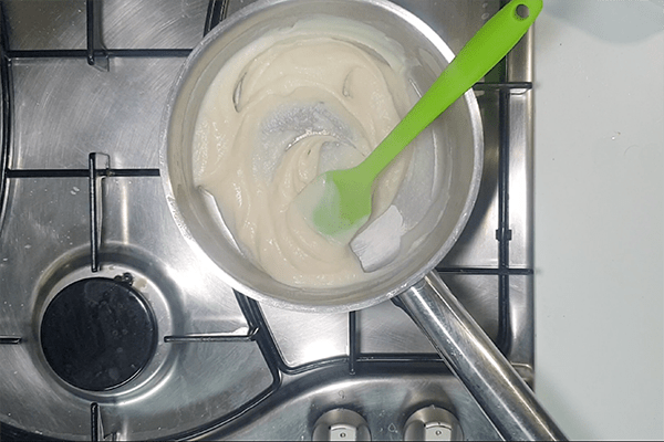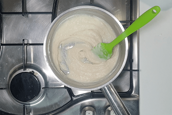 Aggiungete il latte caldo e mescolate continuamente fino a raggiungere la consistenza desiderata