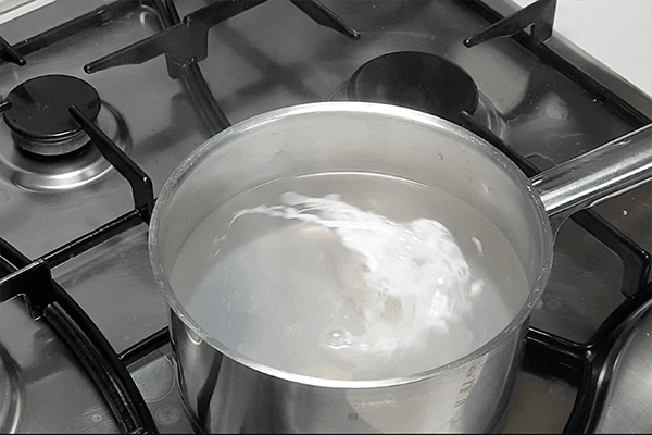 Per preparare l'uovo pochette, mettere in un tegame tre dita di acqua, due cucchiai di aceto bianco e del sale. Poi portate a bollore.